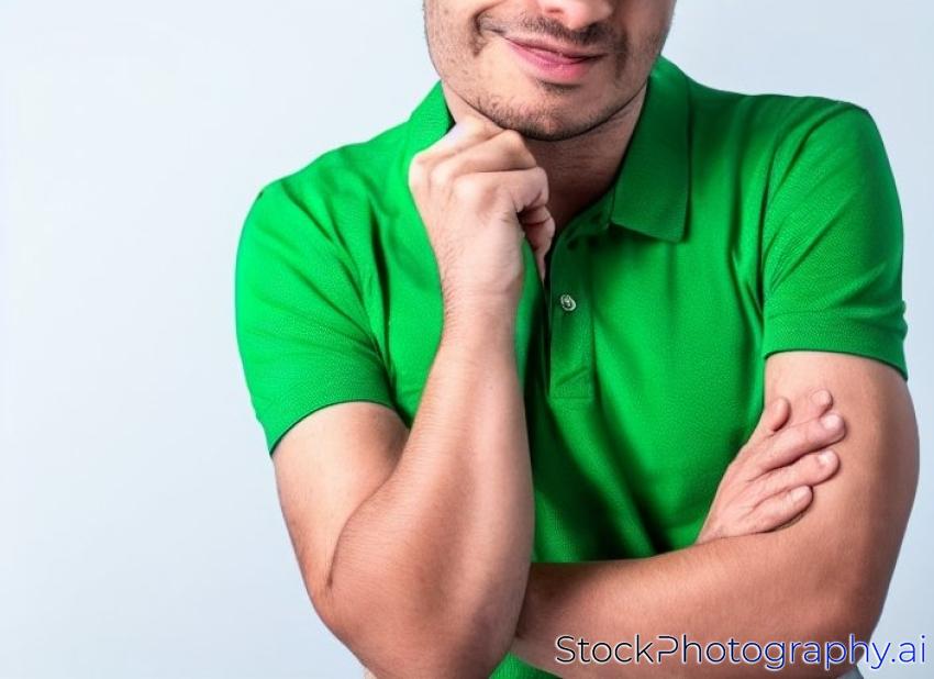 man with green polo shirt on a white background