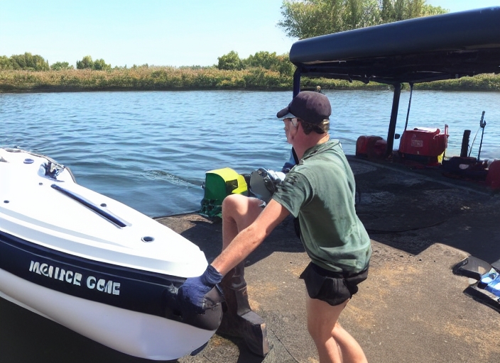 boat boating closeup cover detail dirty engine equipment fishing fuel garage gasoline hand handling industry inflatable inspection machine maintenance man marine mechanic mechanical metal motor motorboat nautical oil open outboard part power preservation repair repairman sea seasonal service ship speedboat storage technician technology tool transport transportation vehicle vessel water worker-