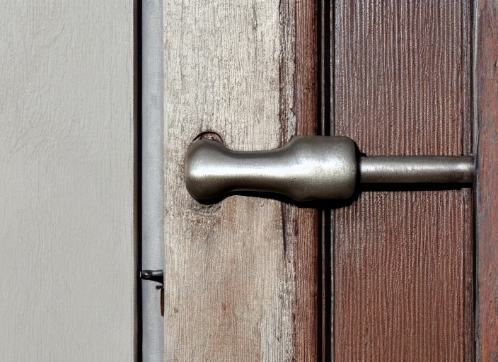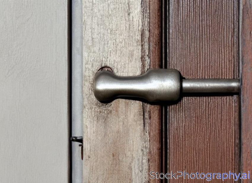 metal door-handle in woodrn texture door with shadow