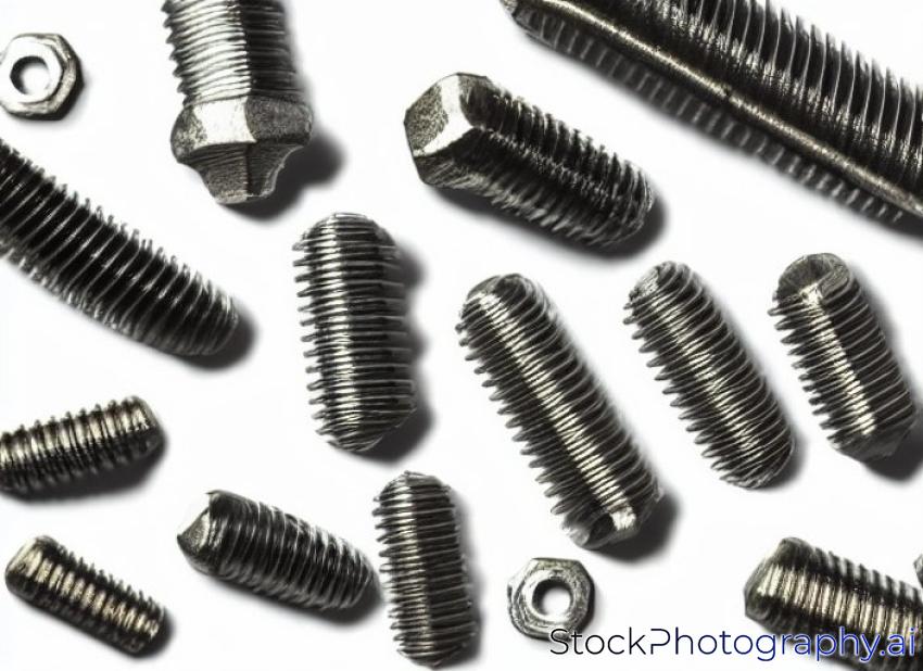 metal fasteners of different sizes and diameters: nails, bolts, nuts on a white background. view from above.