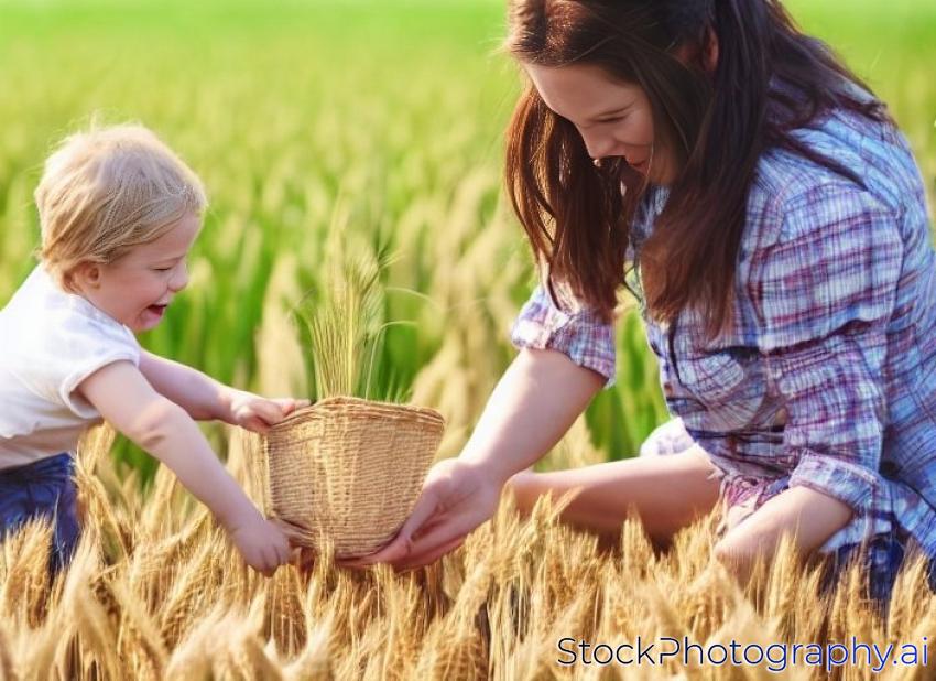 agricultural agriculture baby bag barley bread cereal child childhood children crop daughter dream ear family fantasy farm farmer farming food food processing freedom game grain hand happiness harvest industry laughter life mom mother oats parent play pleased produce ripe rye sack seed smile son success successful summer threshing wheat wheat berry whole grain-