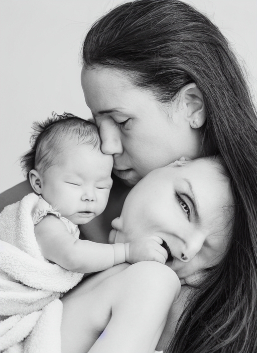 mother kissing baby girl after bathing isolated on white