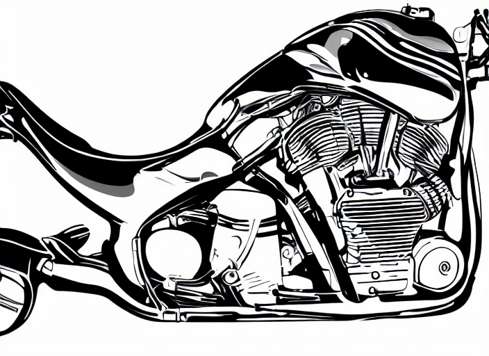 motor bike in xray style image with engine highlighted