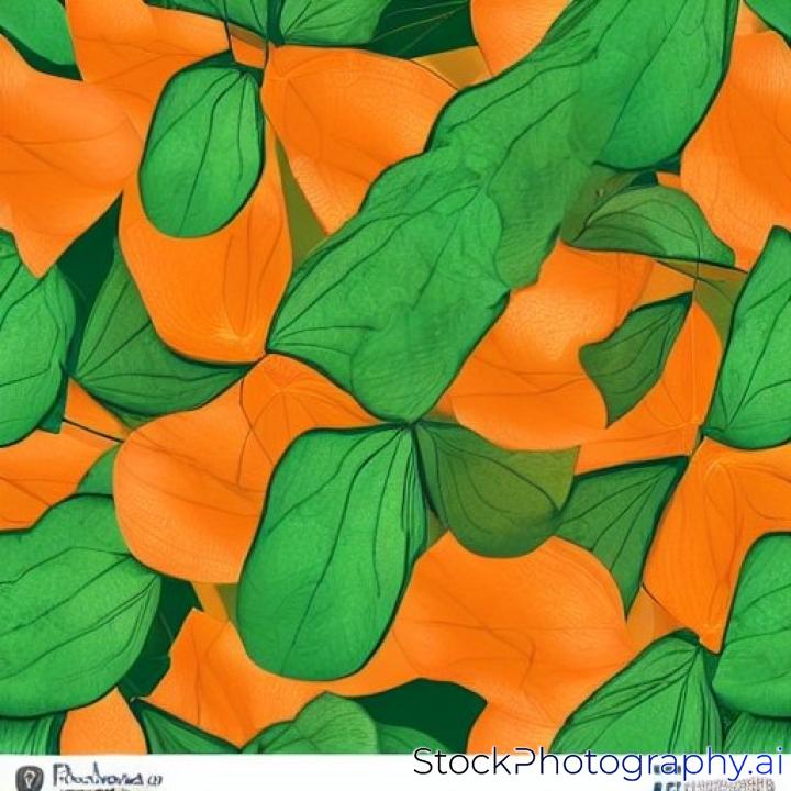 multicolor seamless background pattern texture made of huge crumpled brown with golden and green-veined leaves of poplar filled with orange flower petal