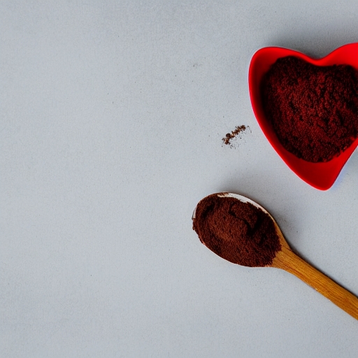 not ground cacao beans and cocoa powder in a bowl in the shape of a red heart isolated on white background