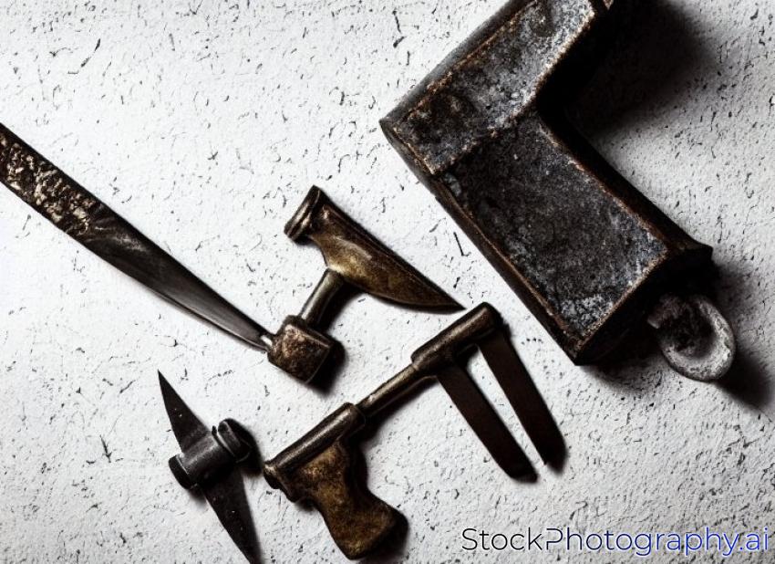 old heavy anvil and hammer, blacksmith tools, isolated on white