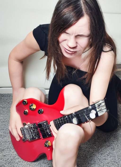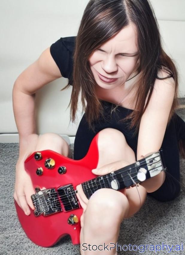 acoustic artist attractive beautiful beauty brunette caucasian entertainment fashion female friendly fun girl guitar guitarist instument isolated jeans knees lifestyle model music passionate people performer person playing portrait posing pretty rock roll seated sign smile song soul studio teen teenager white woman young youth-