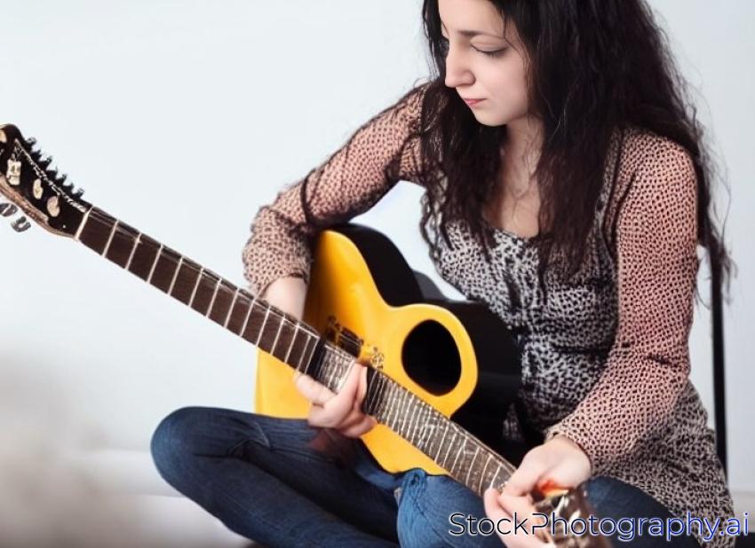 acoustic artist attractive bass beautiful beauty blond caucasian entertainment fashion female friendly fun girl glasses guitar guitarist instrument isolated jacket jeans knees leather music passionate people performer person playing portrait posing pretty rock roll seated sign smile song soul studio sunglasses teen teenager white woman young youth-
