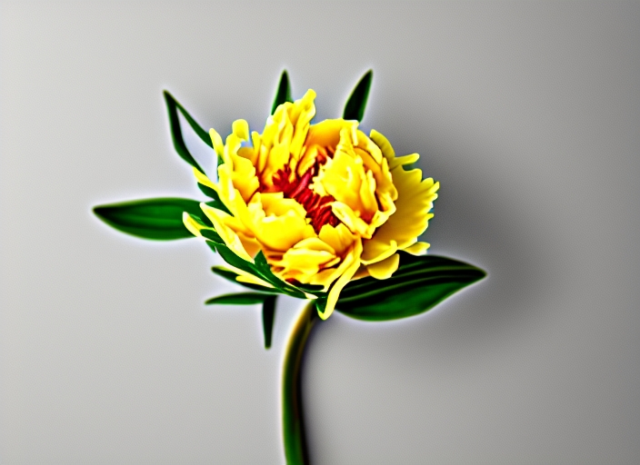 peony flower yellow Flower with green leaves on a stem isolated on white background. No shadows with clipping path. Close-up. Nature.