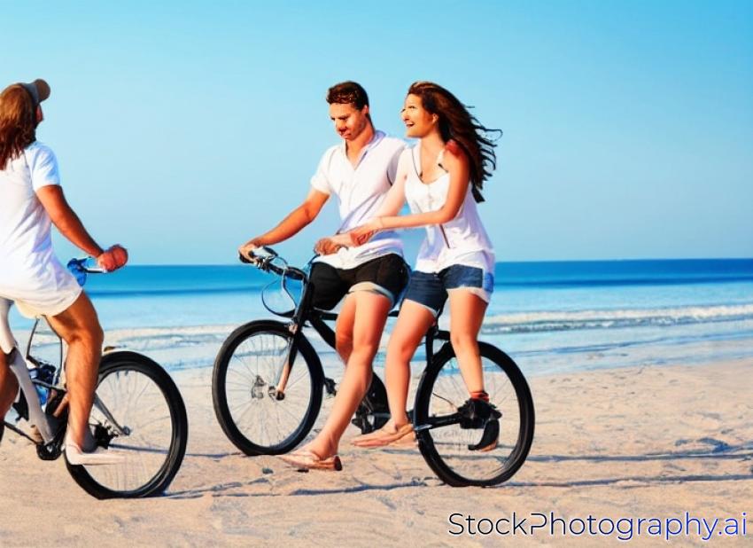 active adult athletic beach beautiful bicycle bicyclist bike biking boyfriend casual cheerful concept couple cycling date dating directing direction family free time girl girlfriend happy hispanic leisure lifestyle man outdoors person pointing finger relationship ride romance sea seaside shades showing smiling sport summer summer holidays summertime sunglasses together two woman young-