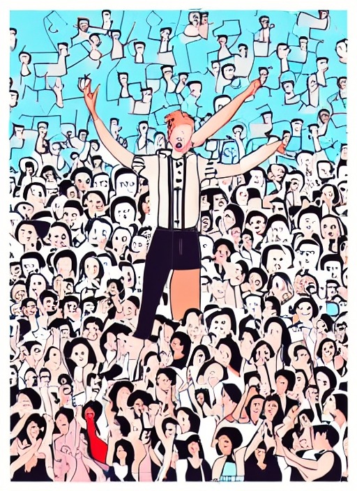 pop singer performing on stage with crowd cheering (vector version available)