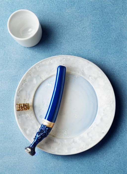 porcelain fork with caviar and champagne, with blue background