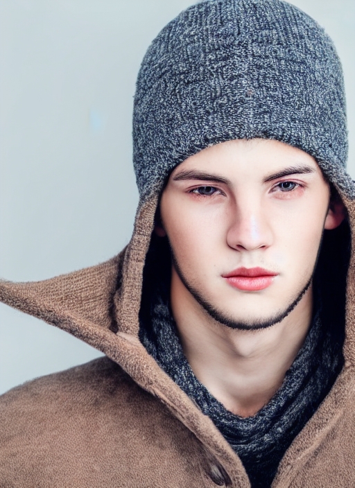 portrait of handsome young man with attitude, young male fasion model wearing winter's attire