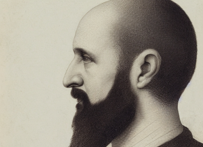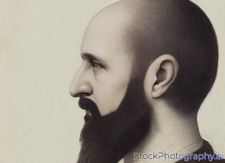 portrait of male with beard and bald. profile of white man in his thirties on brown background