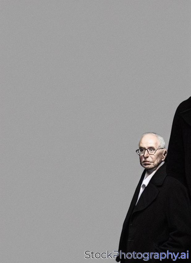 portrait of stern man in black coat against dark background