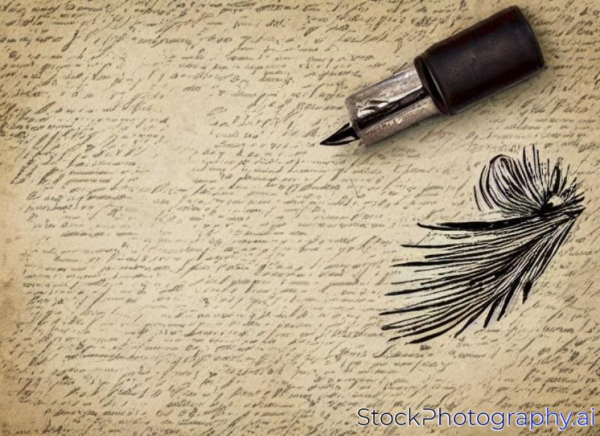 quill pen and inkwell on vintage paper background