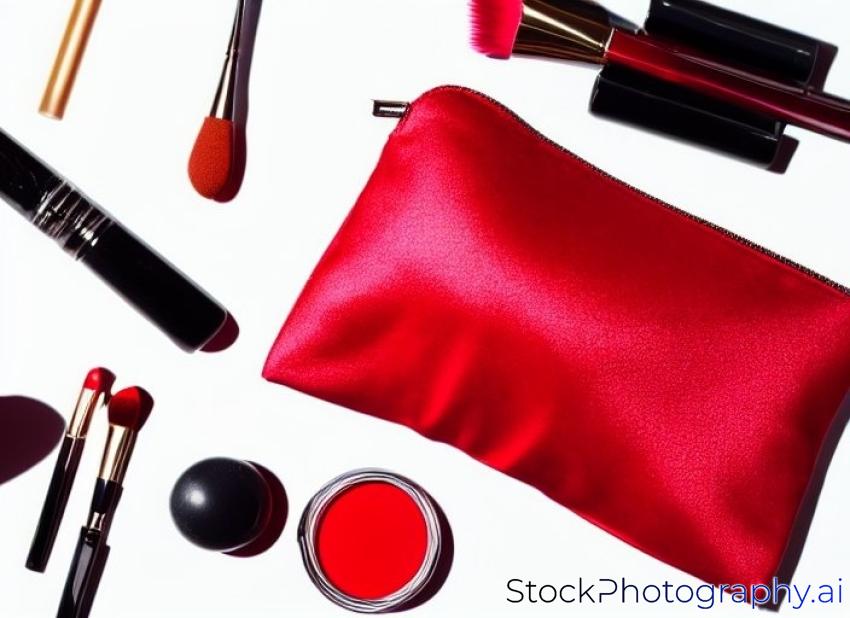 red makeup bag isolated at white background