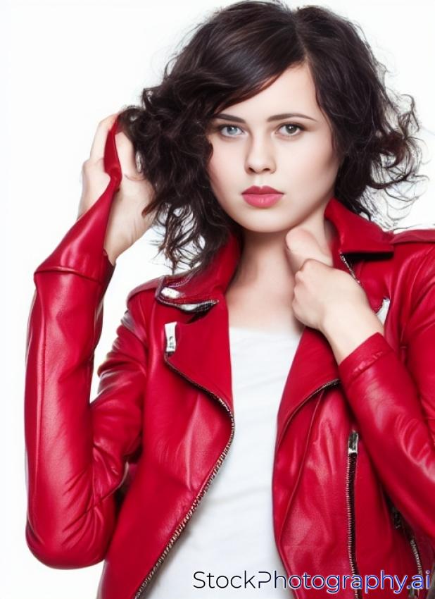 red women's leather jacket isolated on white background