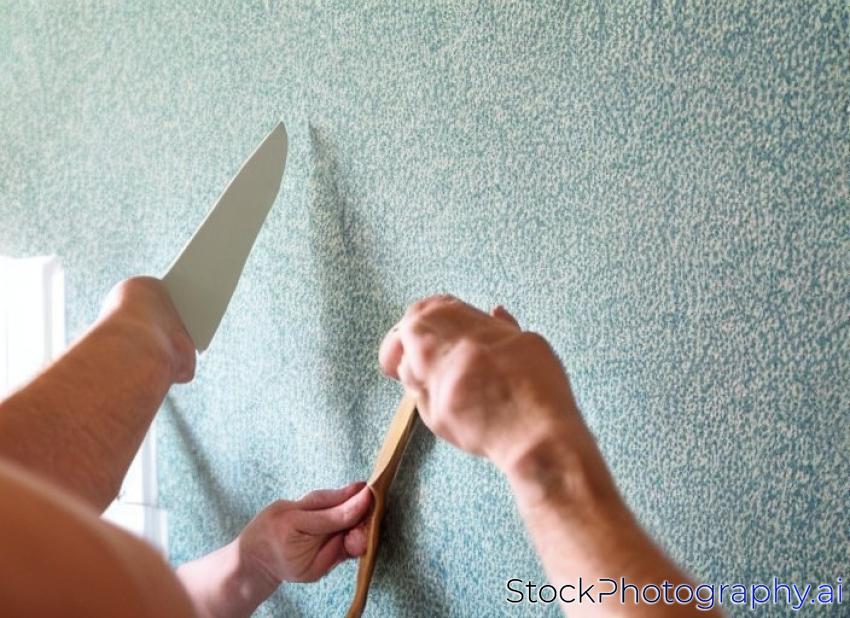 removing Wallpaper from the wall with a spatula. with free text space