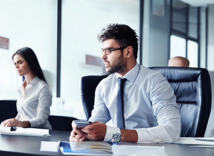 responsible businessman sitting in modern office.people and technology