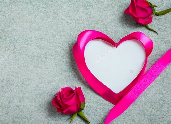 retro camera and blank photo frame in heart shaped film with blank notebook and pink roses flower with green ribbon. top view. valentines day background