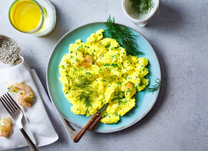 scrambled eggs with dill and shrimp