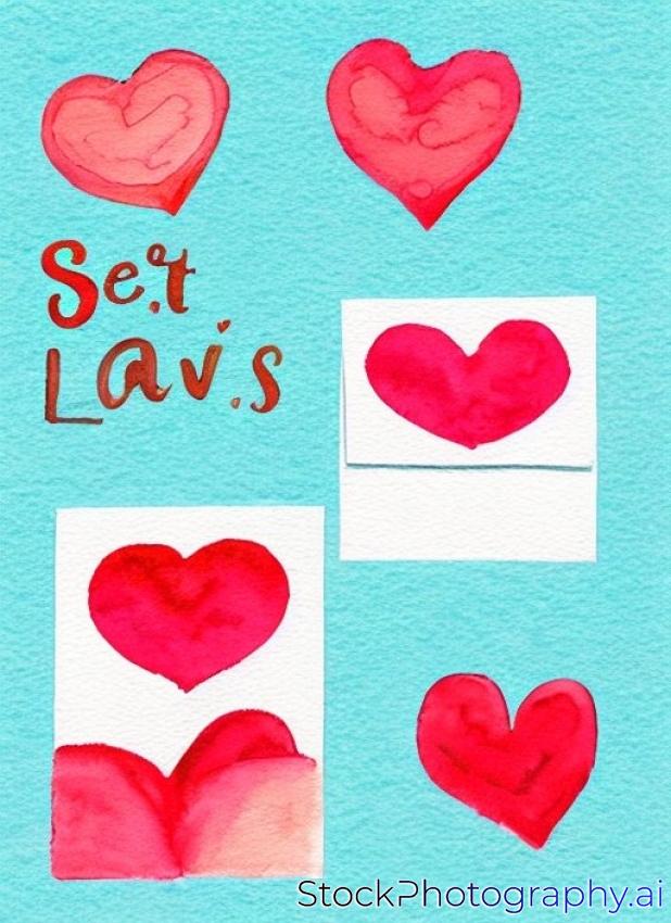 set of hearts, bear, love elements, cute valentine's day card, watercolor illustration