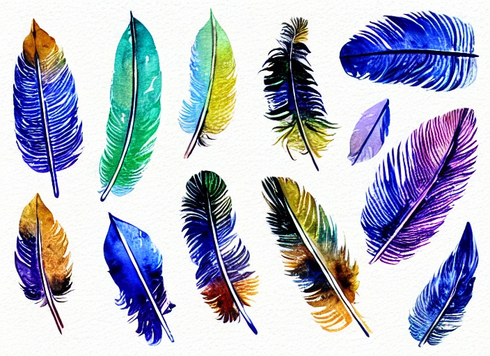 set of watercolor feathers
