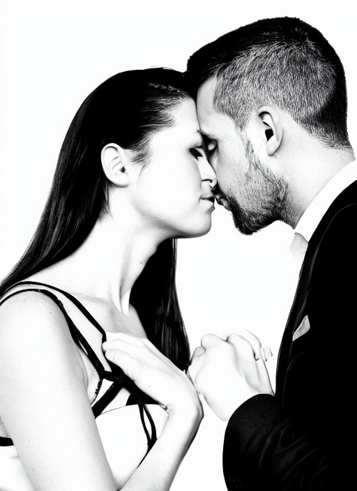sexy stylish couple portrait kissing in silhouette on white background