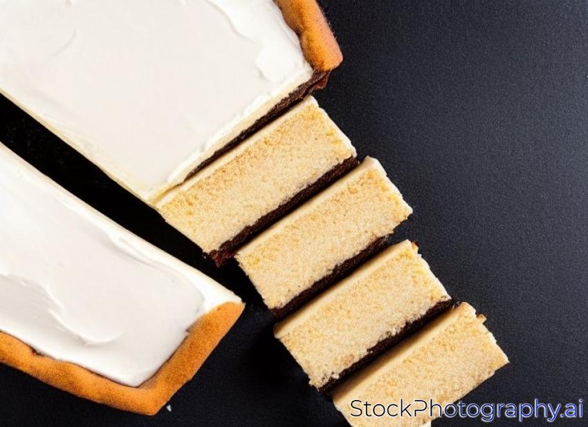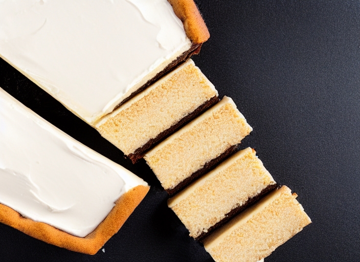 single iced custard slice cake on a black background