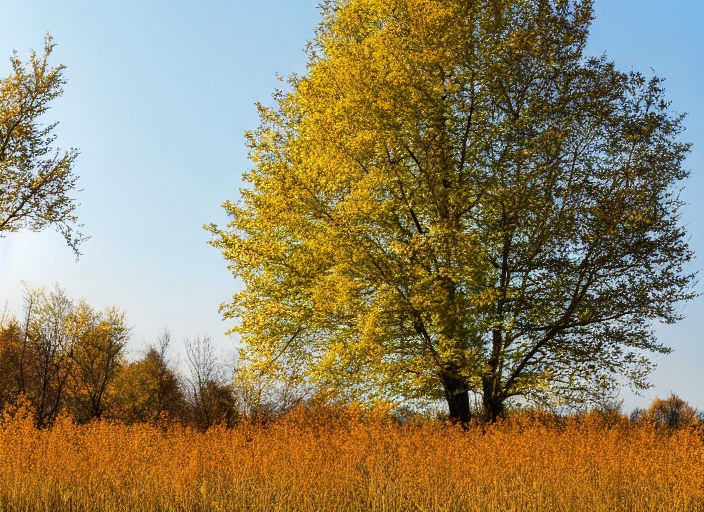 slender green poplar among a autumn field