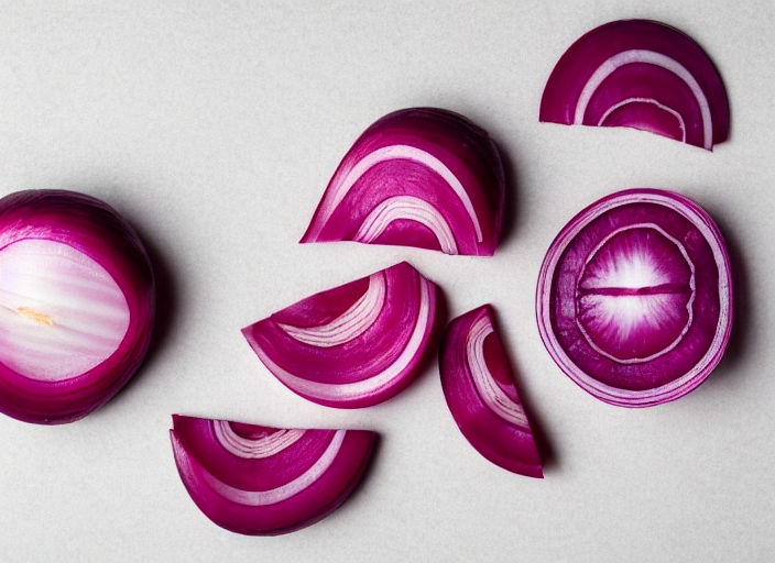 sliced and falling red onion isolated on white background
