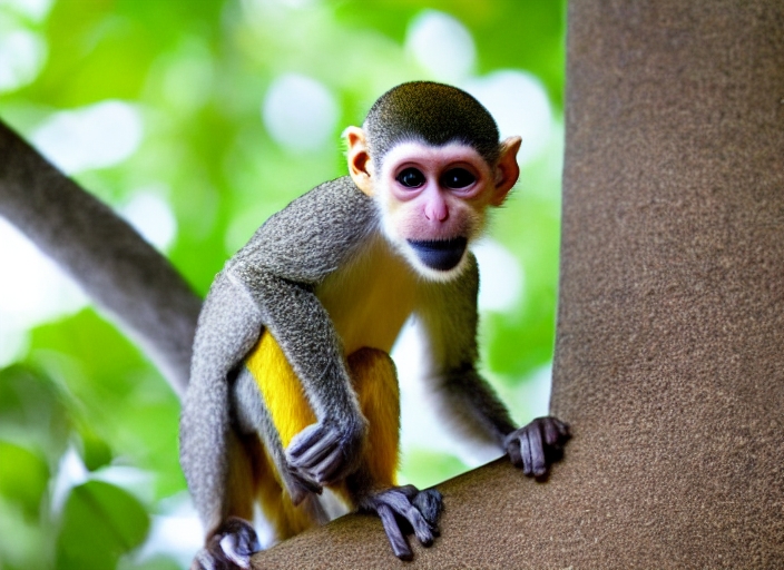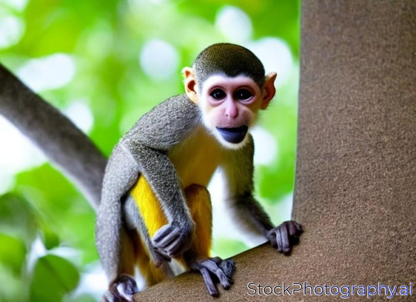 squirrel monkey preparing for jump, little monkey sitting on a tree