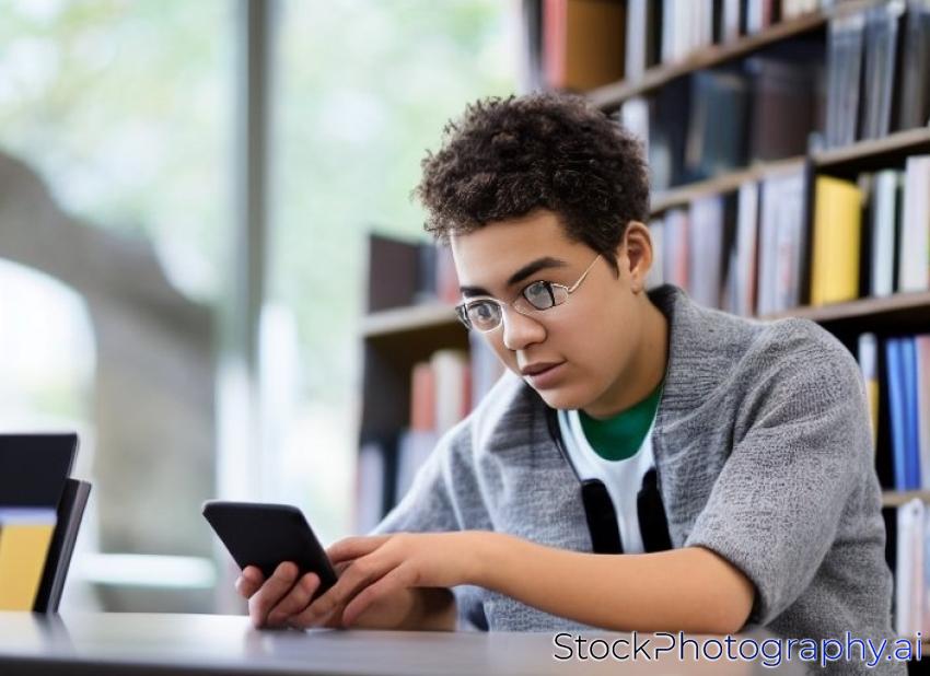 student with touchpad in library