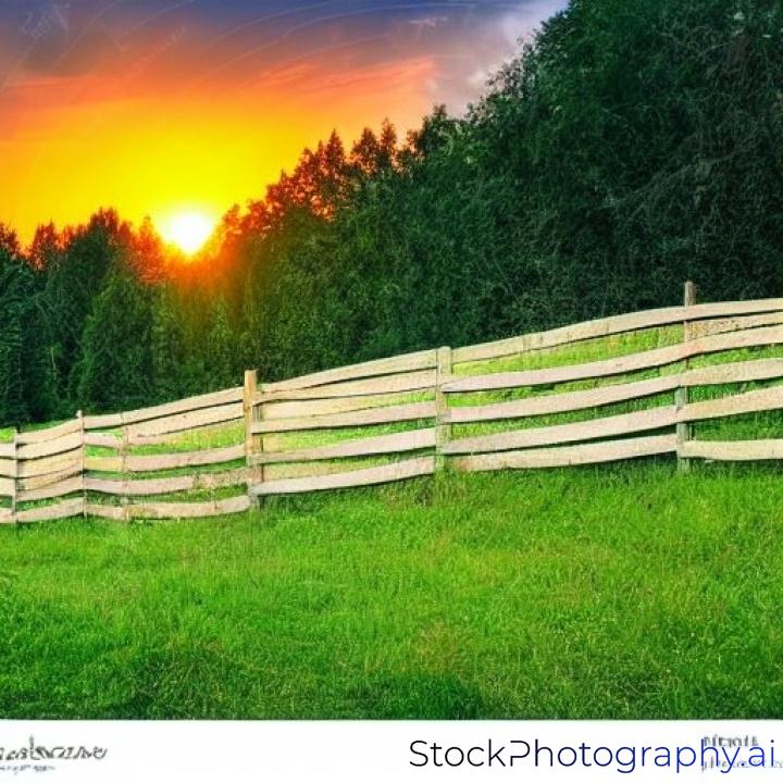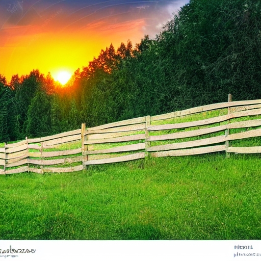 summer landscape. fence on the hillside meadow near forest in mountain at sunset