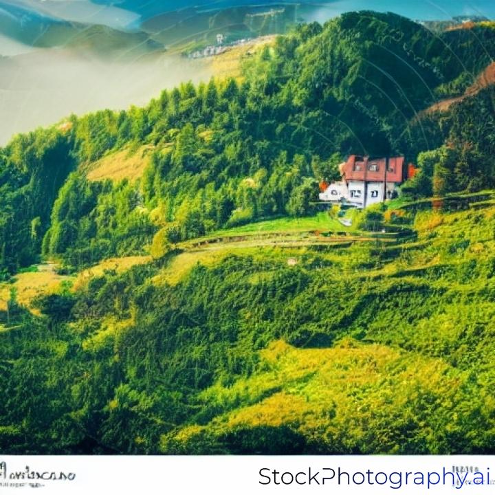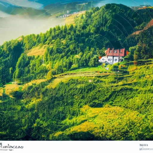 summer landscape. village on the hillside. forest on the mountain light fall on clearing on mountains
