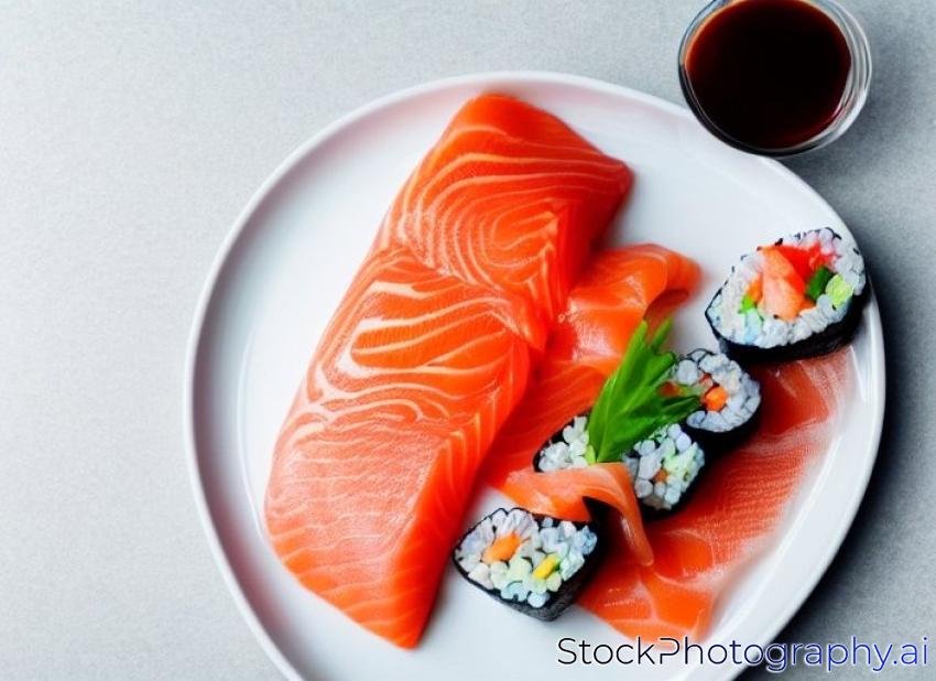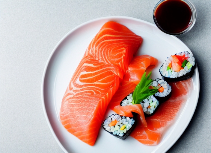 sushi with salmon on the plate on white background