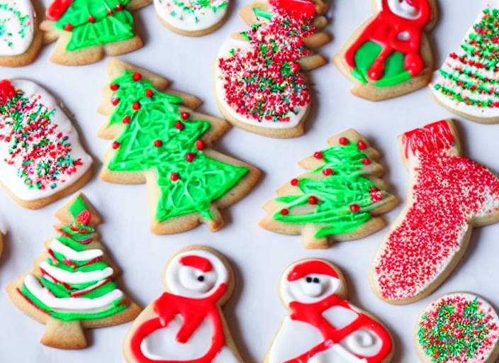 sweet christmas cookies decorating with icing and sprinkles