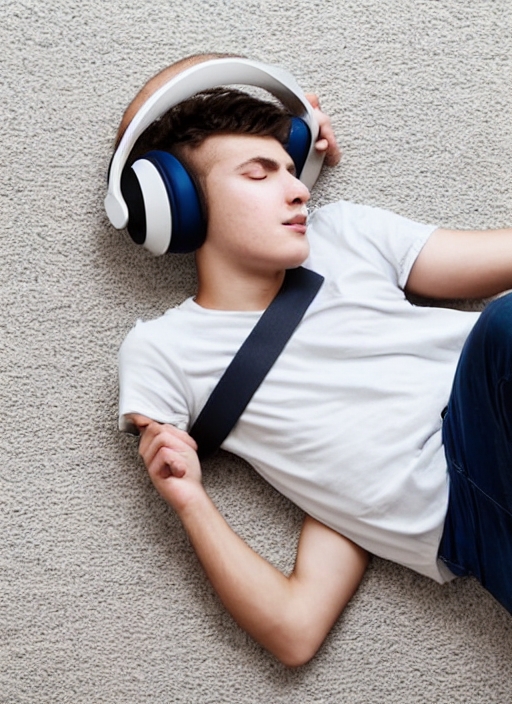 teenager on floor listening to music with headphones