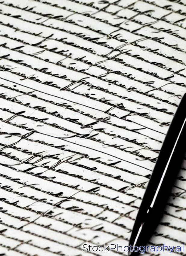 thinking of you letter being written in calligraphy on parchment paper with pen