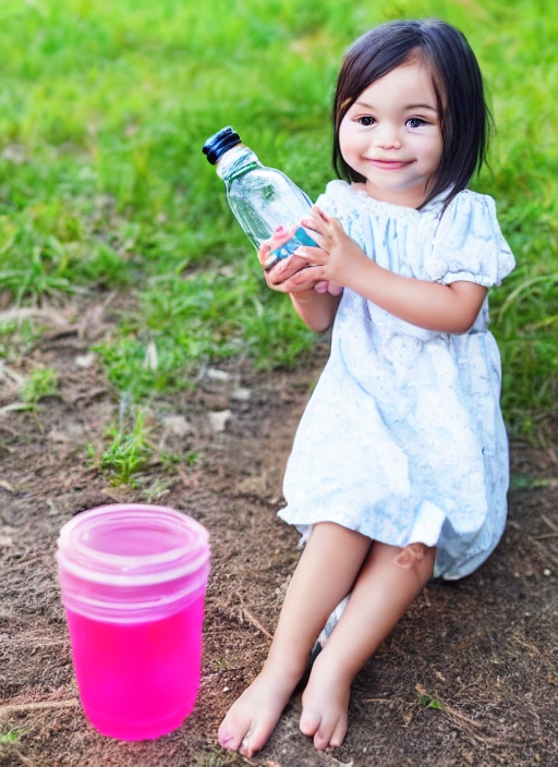 toddler girl outdoors with bottle of water
