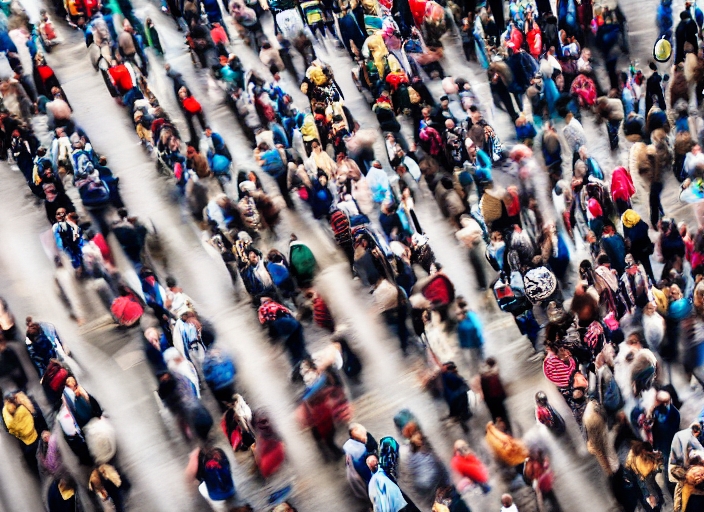 top view of a crowd of commuters in motion blur