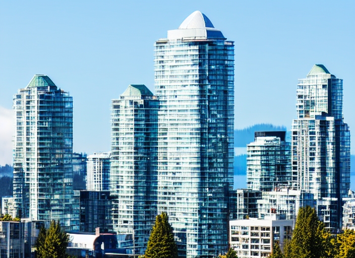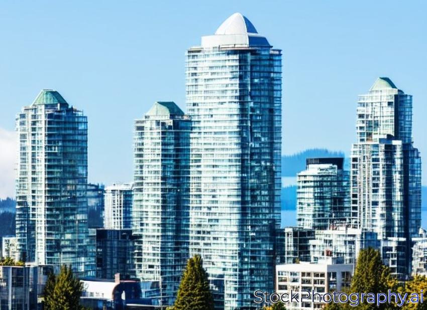 urban scene of Vancouver Canada, skyscraper showing various office buildings