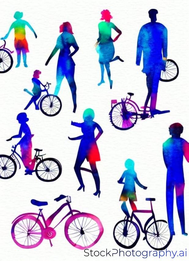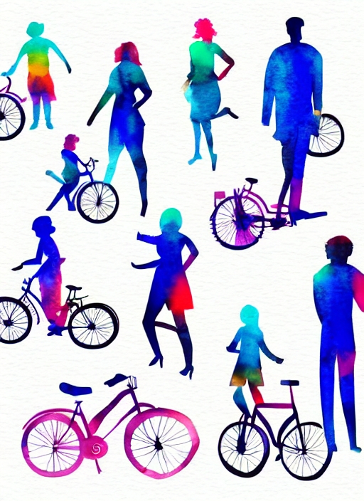watercolor people on white background. Colored hand sketch shopping, sweetheart, family, man, bike.