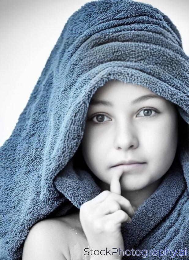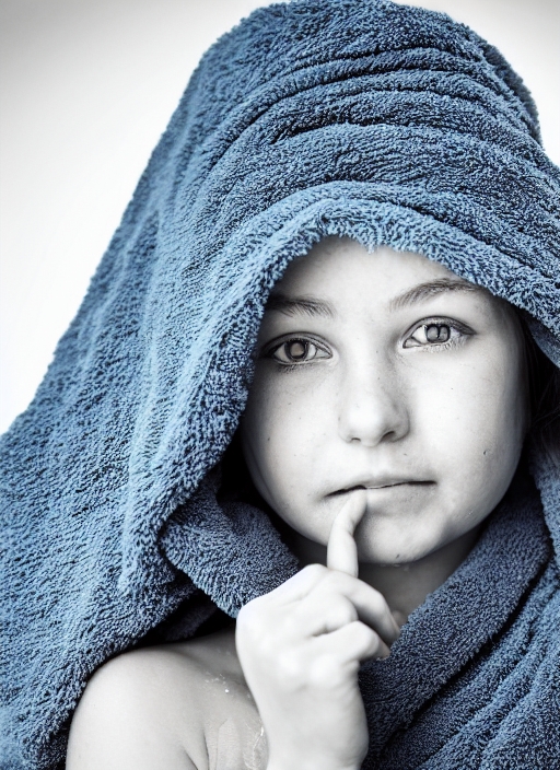 wet girl and blue towel (b&w photo with color element)
