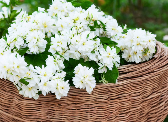 white flower in wicker baskets
