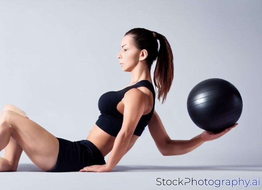 woman doing ball abdominals workout posture on isolated white background