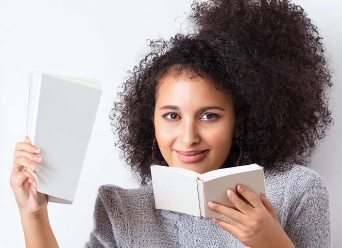 woman holding book on white background