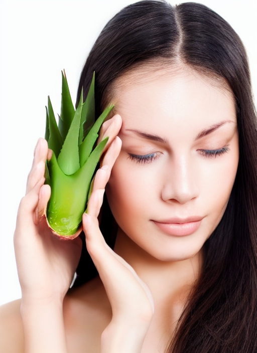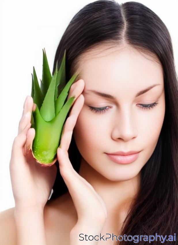 woman with perfect skin and aloe, skincare, healthcare, isolated on white