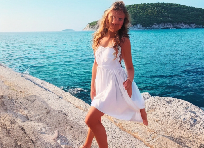 young beautiful girl in dress on the Croatia coast